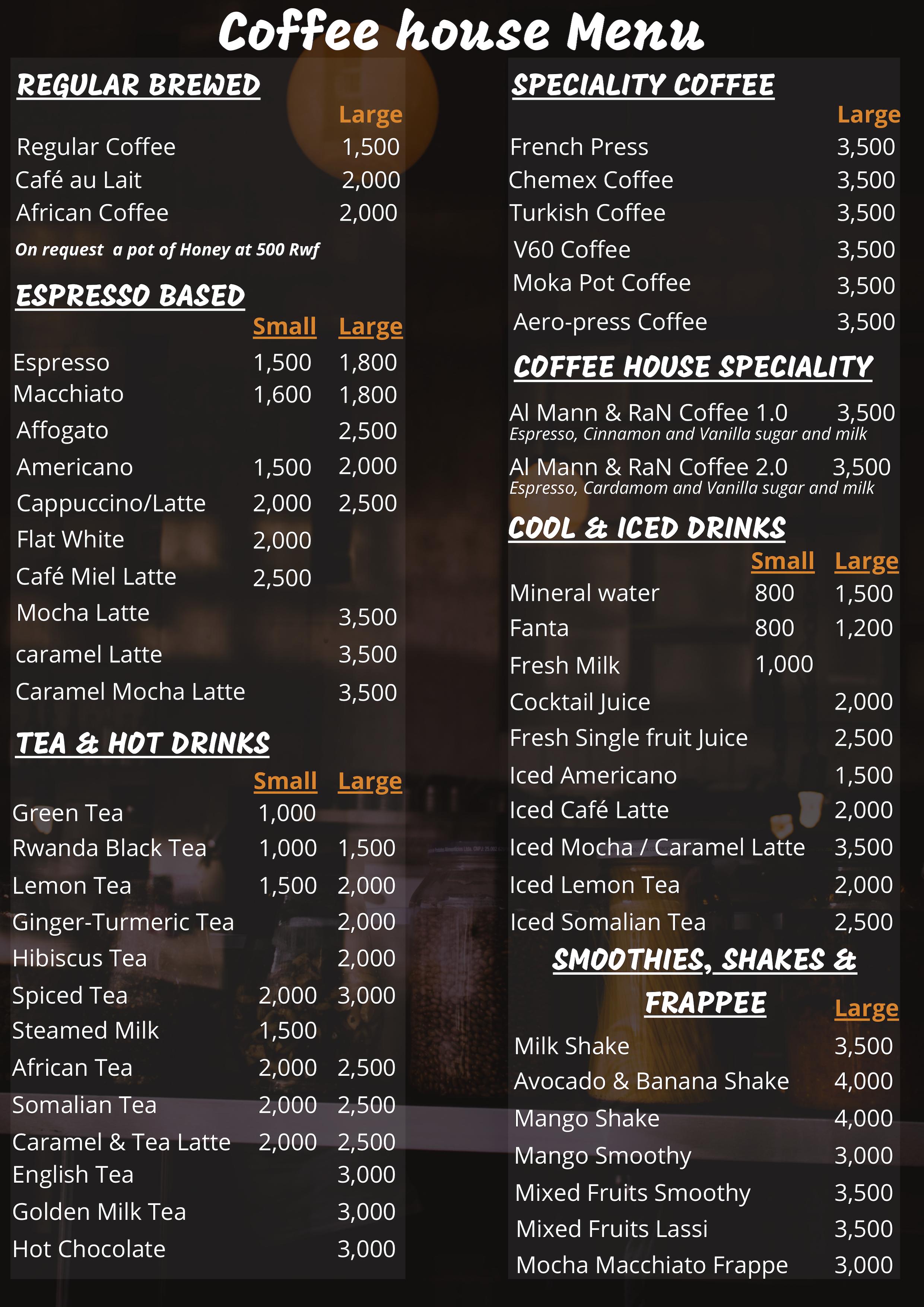 Al Mann and Ran Coffee House truly embodies a commitment to providing a memorable dining experience, combining quality food, exceptional service, and a touch of African flavors.